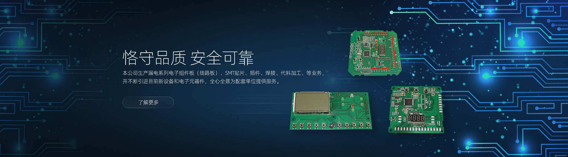 乐清市三合电子有限公司,专业生产漏电系列电子组件板(线路板)、SMT贴片、插件、焊接、代料加工、等业务,是同行中屈指可数的大型厂家之一。