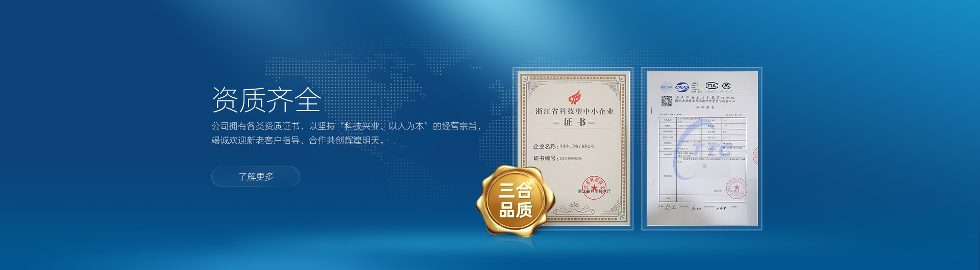 进入二十一世纪,三合公司坚持“科技兴业、以人为本”的经营宗旨,竭诚欢迎新老客户指导、合作共创辉煌明天。